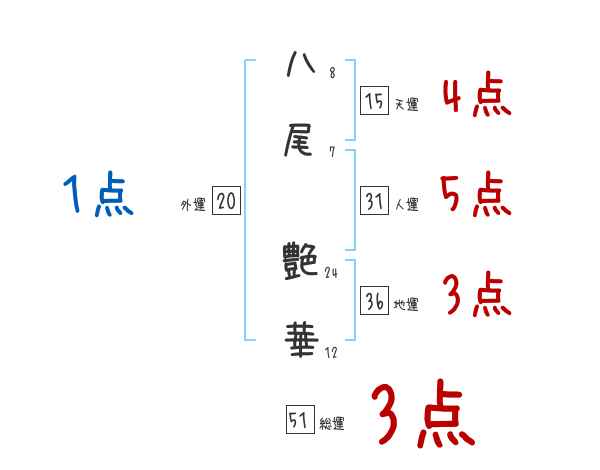 八尾艶華さんの画数の鑑定結果