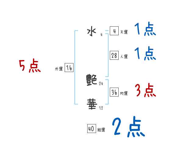 水艶華さんの外運は16画の5つ星