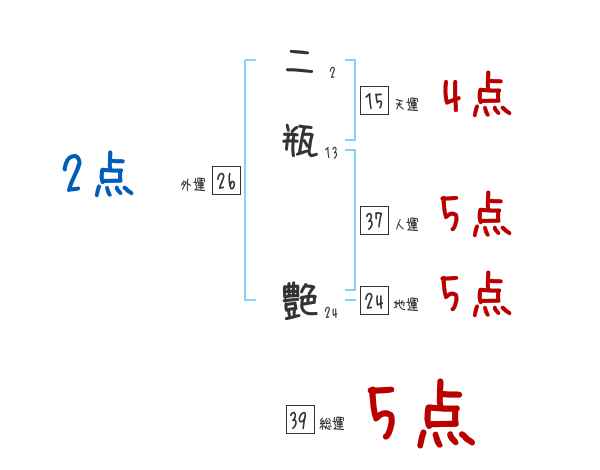 二瓶艶さんの画数の鑑定結果