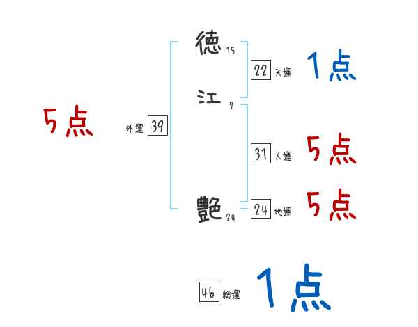 徳江艶さんの画数の鑑定結果