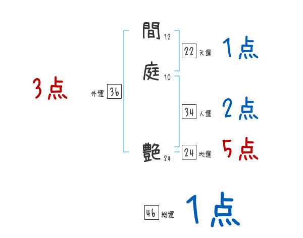 間庭艶さんの画数の鑑定結果