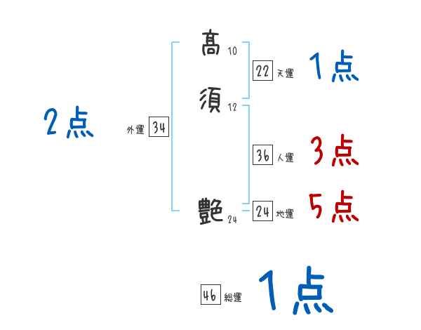天運![]() | 髙須艶さんの天運は22画の1つ星!努力することが苦手ないっぽう手先が器用。芸術性にも優れる。 家系が持つ宿命的な運勢を表します。祖先から受け継いだ苗字ですので自分の力が及びません。家柄を象徴します。 |