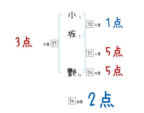 小坂艷さんの画数の鑑定結果