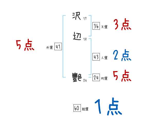 沢辺艷さんの画数の鑑定結果