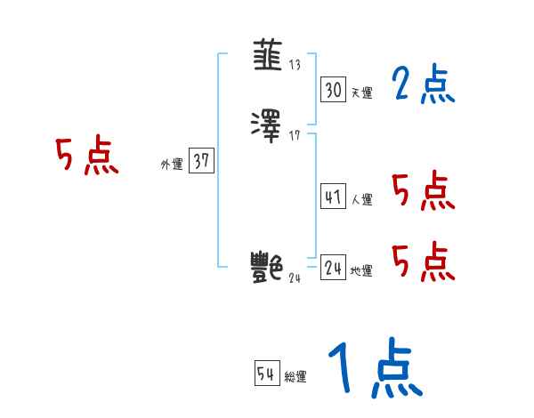 韮澤艷さんの画数の鑑定結果