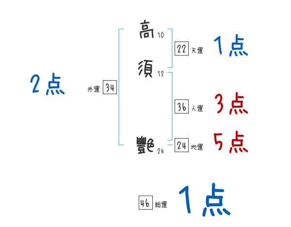 高須艷さんの画数の鑑定結果