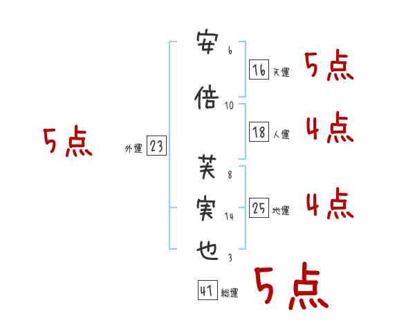安倍芙実也さんの画数の鑑定結果