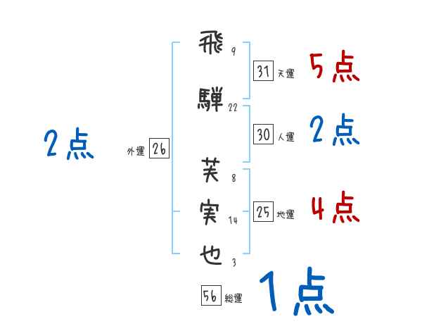 外運![]() | 飛騨芙実也さんの外運は26画の2つ星!波瀾万丈かも。信頼できる人を大事にしましょう。 生活面を象徴する運勢です。外部から受ける影響力を表し、結婚運、家庭運や職場、環境への順応性を表します。 |