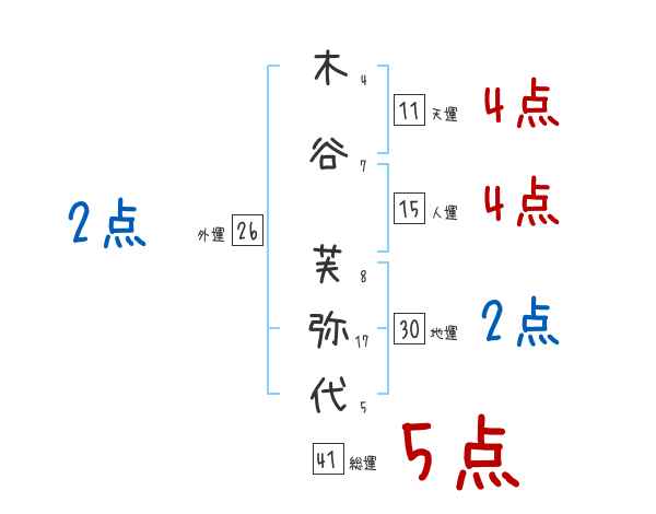 外運![]() | 木谷芙弥代さんの外運は26画の2つ星!波瀾万丈かも。信頼できる人を大事にしましょう。 生活面を象徴する運勢です。外部から受ける影響力を表し、結婚運、家庭運や職場、環境への順応性を表します。 |