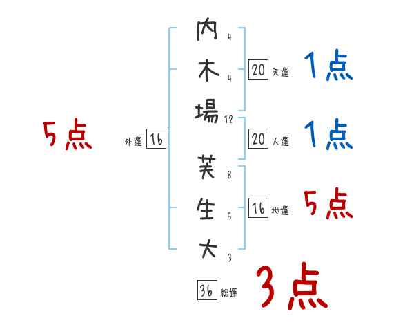 総運![]() | 内木場芙生大さんの総運は36画の3つ星!先見性が豊かです。多少神経質で苦労することも。 あなたの人生を表す1番重要な運勢です。生涯を通じて影響する総合運となり、主に50歳以降の晩年期に影響を及ぼします。 |