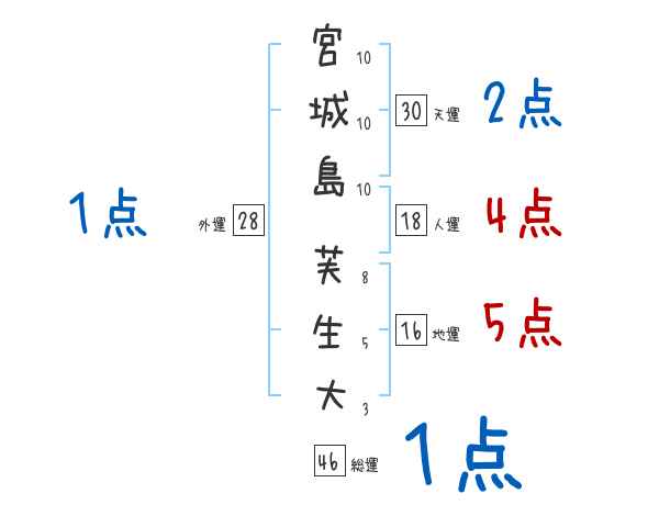 外運![]() | 宮城島芙生大さんの外運は28画の1つ星!家庭環境に注意。スポーツで活躍できる能力があるかも。 生活面を象徴する運勢です。外部から受ける影響力を表し、結婚運、家庭運や職場、環境への順応性を表します。 |