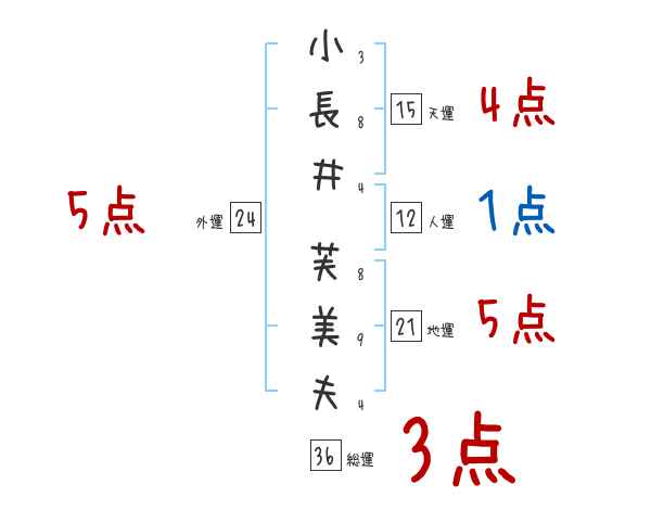 小長井芙美夫さんの画数の鑑定結果
