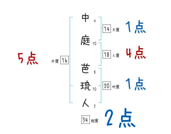 中庭芭琉人さんの画数の鑑定結果