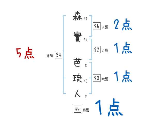 森實芭琉人さんの画数の鑑定結果