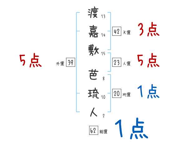 渡嘉敷芭琉人さんの画数の鑑定結果