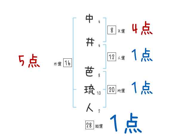 中井芭琉人さんの画数の鑑定結果