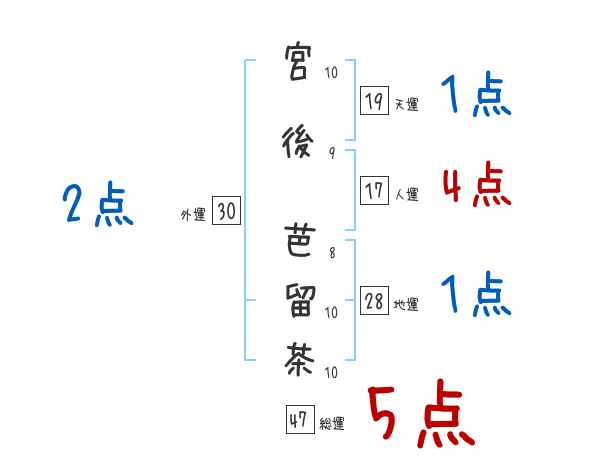 宮後芭留茶さんの画数の鑑定結果