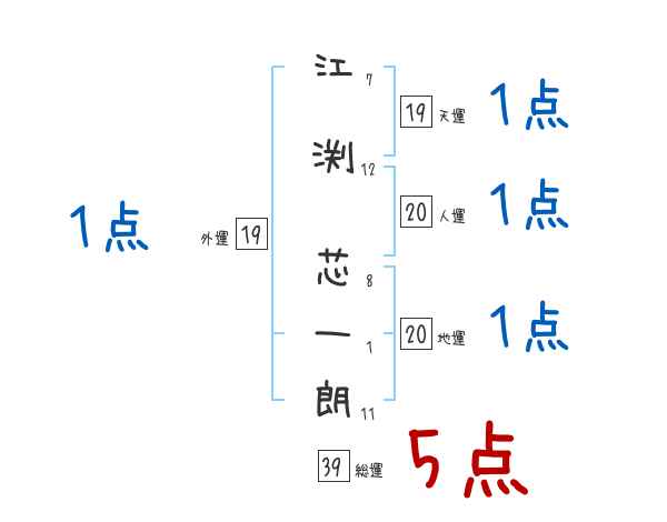 外運![]() | 江渕芯一朗さんの外運は19画の1つ星!優れた才能を持ちますが、協調性が足りないことも。周りの人と協力する事を意識しましょう。 生活面を象徴する運勢です。外部から受ける影響力を表し、結婚運、家庭運や職場、環境への順応性を表します。 |