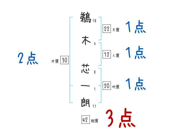 外運![]() | 鵜木芯一朗さんの外運は30画の2つ星!浮き沈みの激しさに注意しましょう。 生活面を象徴する運勢です。外部から受ける影響力を表し、結婚運、家庭運や職場、環境への順応性を表します。 |