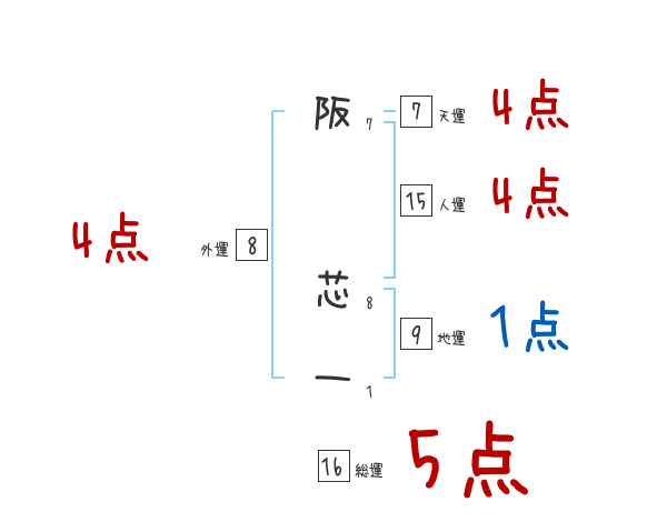 阪芯一さんの画数の鑑定結果