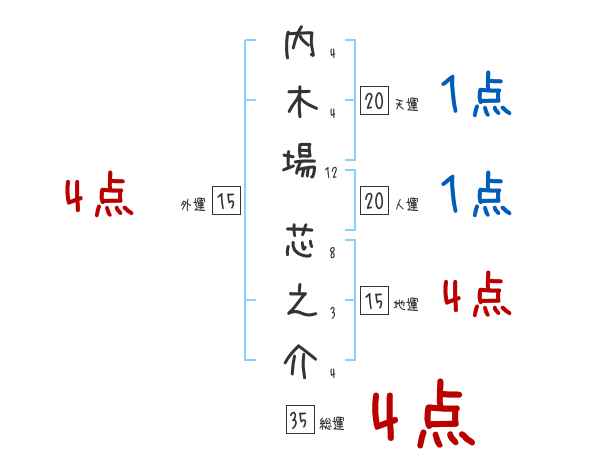 内木場芯之介さんの画数の鑑定結果