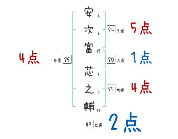 安次富芯之輔さんの画数の鑑定結果