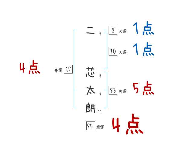 二芯太朗さんの画数の鑑定結果