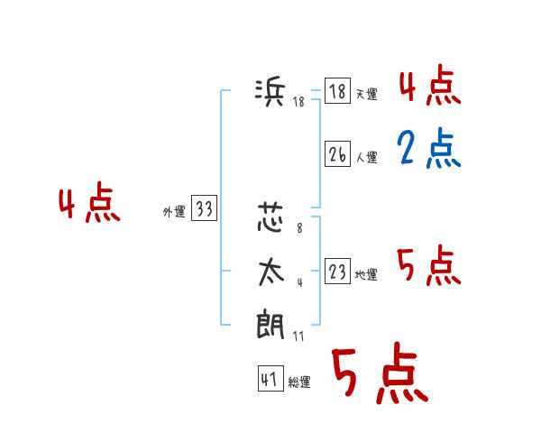 浜芯太朗さんの画数の鑑定結果