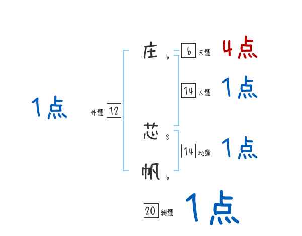 家系が持つ宿命的な運勢を表します。祖先から受け継いだ苗字ですので自分の力が及びません。家柄を象徴します。