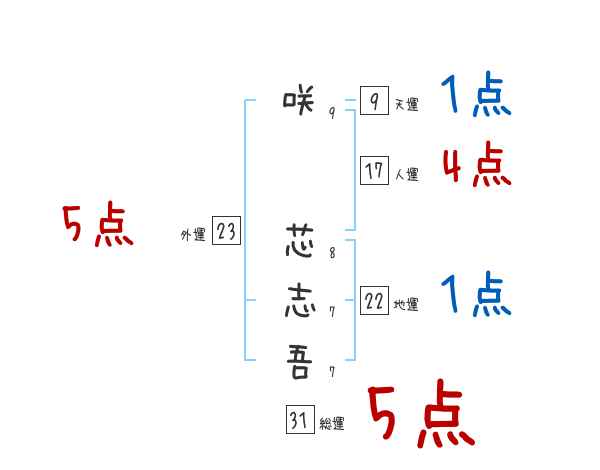 咲芯志吾さんの画数の鑑定結果