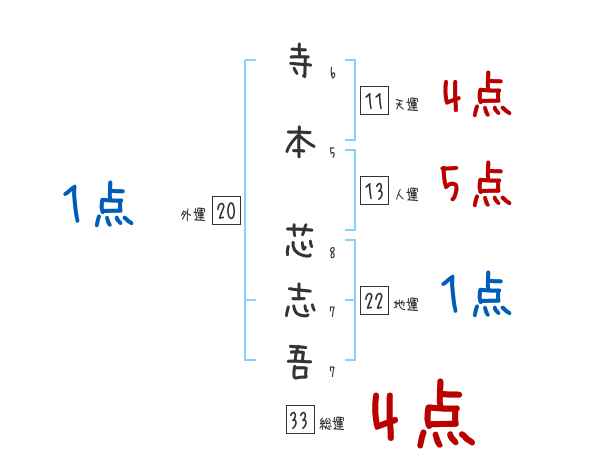 寺本芯志吾さんの画数の鑑定結果