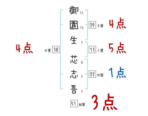 御園生芯志吾さんの画数の鑑定結果