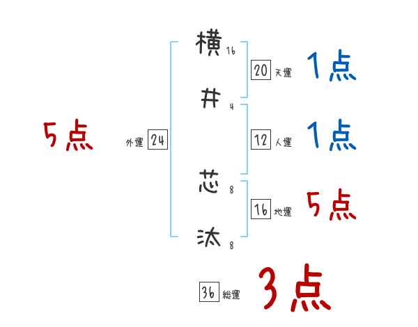 総運![]() | 横井芯汰さんの総運は36画の3つ星!先見性が豊かです。多少神経質で苦労することも。 あなたの人生を表す1番重要な運勢です。生涯を通じて影響する総合運となり、主に50歳以降の晩年期に影響を及ぼします。 |