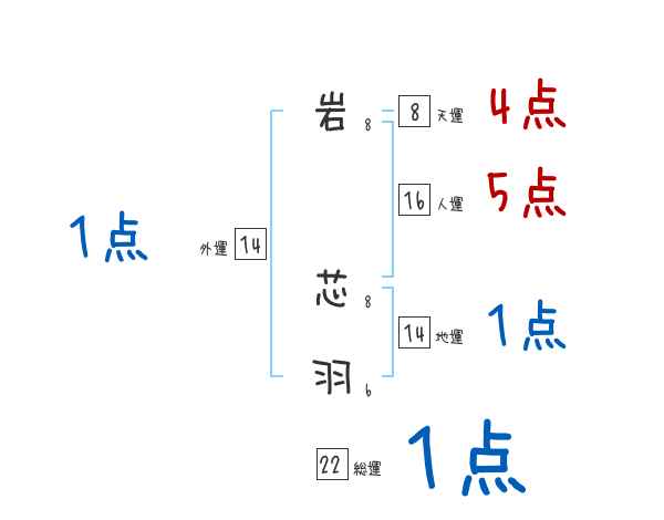 岩芯羽さんの画数の鑑定結果
