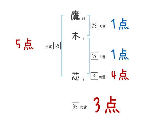 鷹木芯さんの画数の鑑定結果