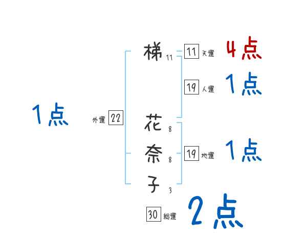 天運![]() | 梯花奈子さんの天運は11画の4つ星!着実に富や地位を得る幸運な人生。 家系が持つ宿命的な運勢を表します。祖先から受け継いだ苗字ですので自分の力が及びません。家柄を象徴します。 |