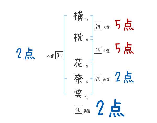 天運![]() | 横枕花奈笑さんの天運は24画の5つ星!家庭運が良く順調な人生。金運にも恵まれる。 家系が持つ宿命的な運勢を表します。祖先から受け継いだ苗字ですので自分の力が及びません。家柄を象徴します。 |