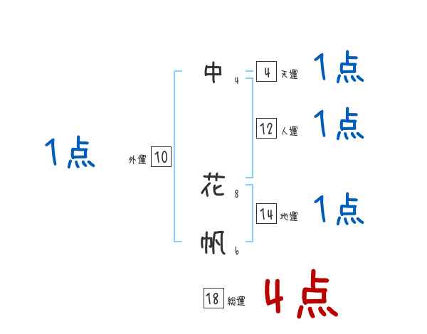 天運![]() | 中花帆さんの天運は4画の1つ星!感情が不安定で苦労するかも。周囲との協調を心掛けましょう。 家系が持つ宿命的な運勢を表します。祖先から受け継いだ苗字ですので自分の力が及びません。家柄を象徴します。 |