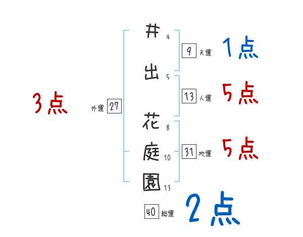 井出花庭園さんの画数の鑑定結果