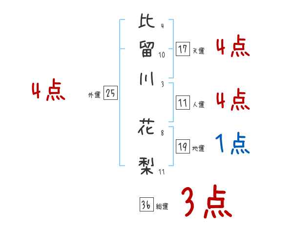 比留川花梨さんの画数の鑑定結果