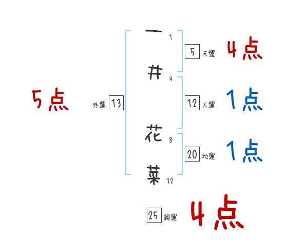 一井花菜さんの画数の鑑定結果