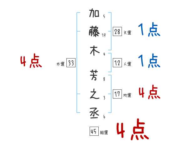 加藤木芳之丞さんの画数の鑑定結果