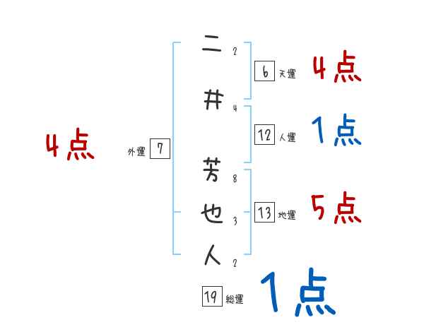 二井芳也人さんの画数の鑑定結果