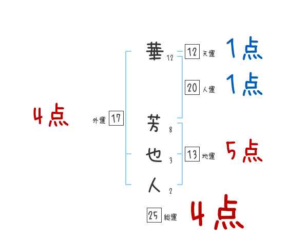 華芳也人さんの画数の鑑定結果