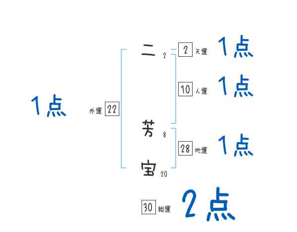 二芳宝さんの画数の鑑定結果