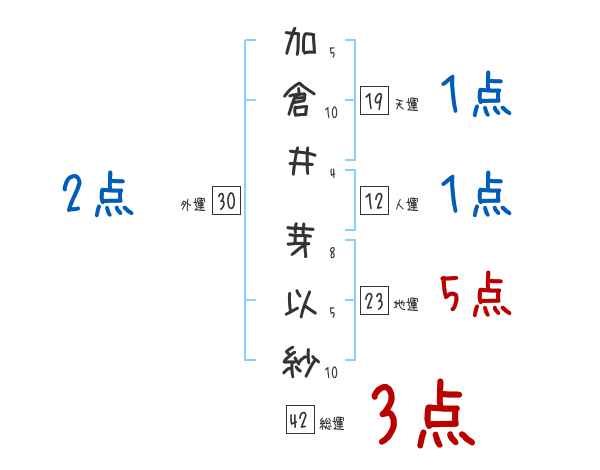 総運![]() | 加倉井芽以紗さんの総運は42画の3つ星!病気に注意。多芸であるが消極的でおとなしい。 あなたの人生を表す1番重要な運勢です。生涯を通じて影響する総合運となり、主に50歳以降の晩年期に影響を及ぼします。 |