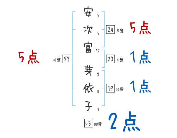 安次富芽依子さんの画数の鑑定結果