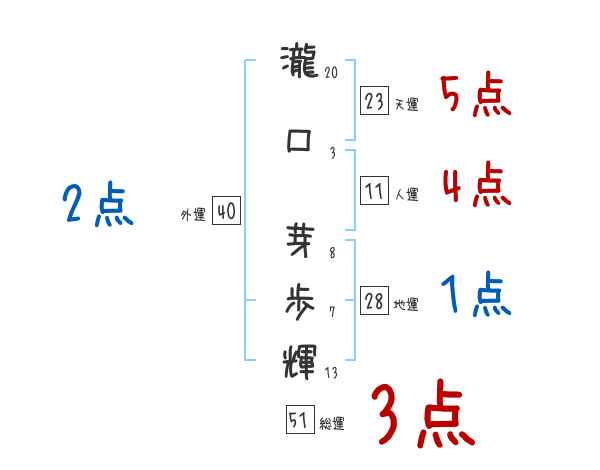 瀧口芽歩輝さんの画数の鑑定結果