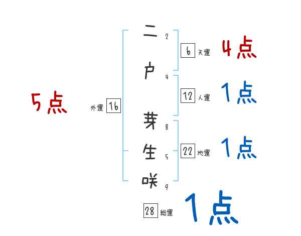 外運![]() | 二戸芽生咲さんの外運は16画の5つ星!人望が厚く大きく発展する。逆転成功が見える。 生活面を象徴する運勢です。外部から受ける影響力を表し、結婚運、家庭運や職場、環境への順応性を表します。 |