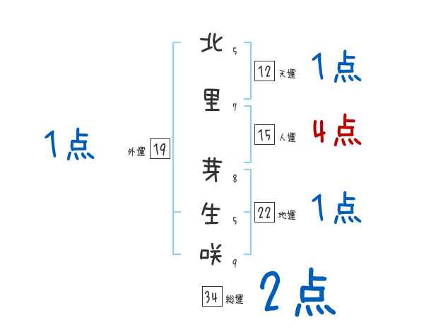 外運![]() | 北里芽生咲さんの外運は19画の1つ星!優れた才能を持ちますが、協調性が足りないことも。周りの人と協力する事を意識しましょう。 生活面を象徴する運勢です。外部から受ける影響力を表し、結婚運、家庭運や職場、環境への順応性を表します。 |